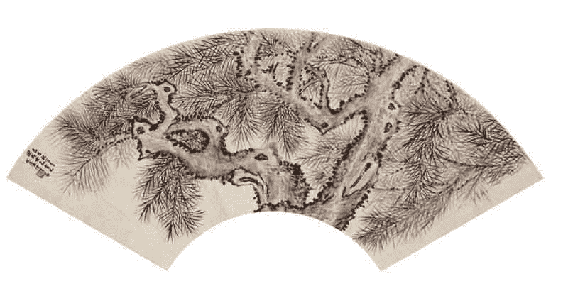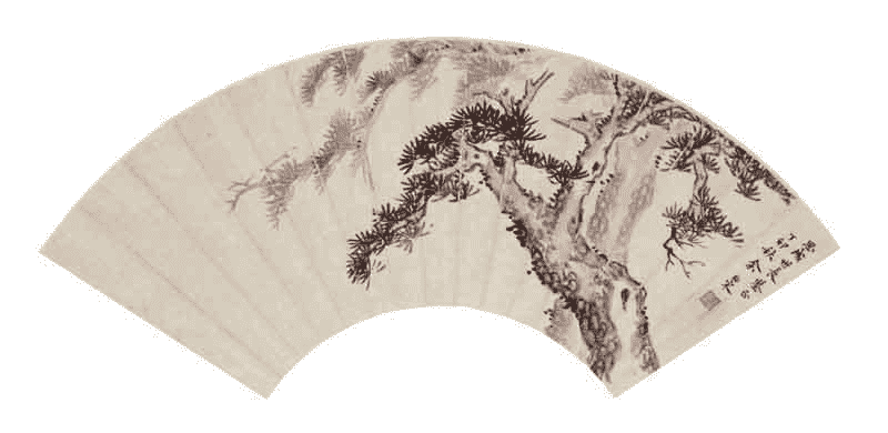 Landscape Fan Painting "Village Trees and Returning Sails"