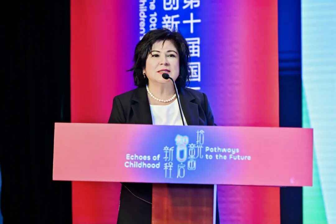 “第十届国际少儿创新艺术邀请展”开幕式结束后,“第四届国际(上海)青少儿美育研讨会”也同期举行。本届研讨会以“拾光童画,智启新程”为主题,邀请了国内外著名专家、学者共同探讨新时代科技浪潮下少儿美育的发展方向。