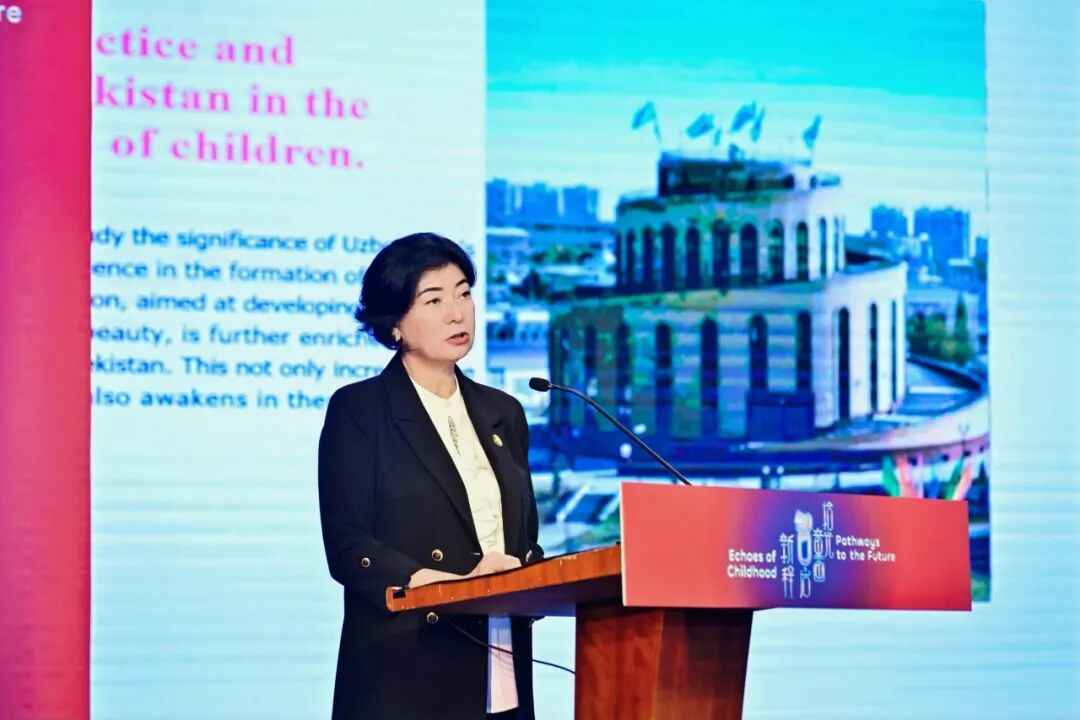 乌兹别克斯坦国家儿童艺术之家总馆长祖尔菲娅·拉苏洛娃发表演讲《以乌兹别克斯坦传统艺术推进儿童美育的实践》