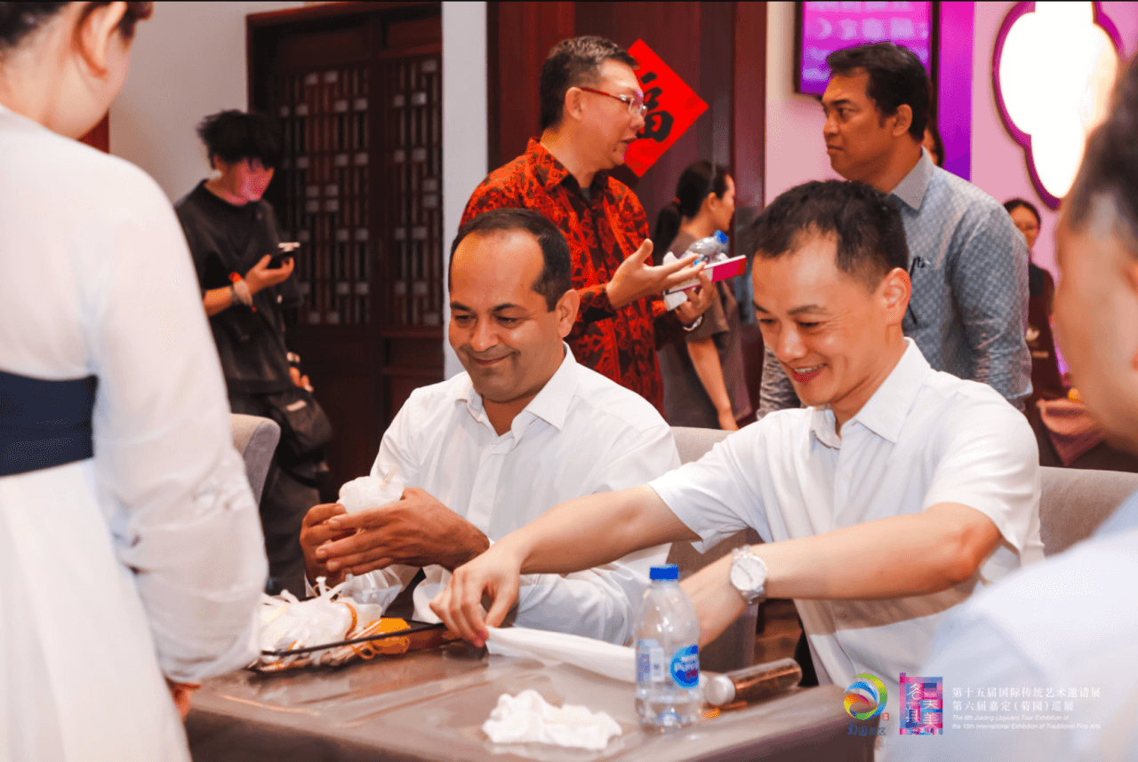 2025年7月19日上午,由上海艺术品博物馆、上海市嘉定区菊园新区管理委员会、上海工艺美术职业学院联合主办,上海市嘉定文化和旅游局支持,上海菊园文化发展有限公司承办的第十五届国际传统艺术邀请展·第六届嘉定(菊园)巡展在嘉定菊园丰德园顺利开幕。