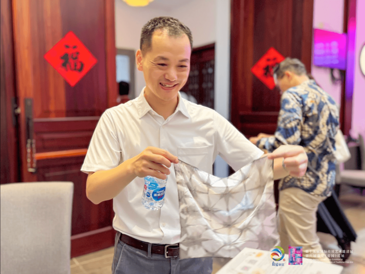 嘉宾们兴致勃勃地观展并体验丰富多彩的非遗手工活动