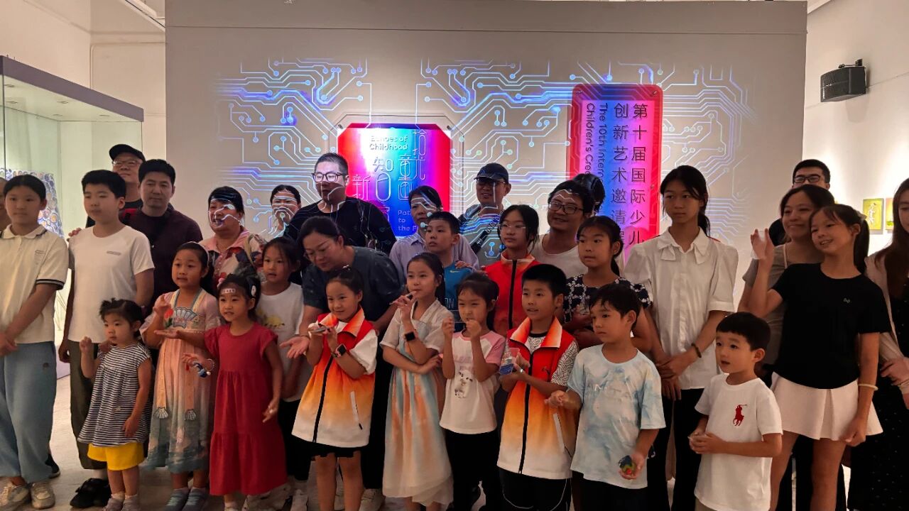 随后,“艺术漫步”环节带领大家走进“第十届国际少儿创新艺术邀请展”。在“苏河小宁”小小讲解员团队的引导下,亲子家庭共同欣赏来自世界各地的少儿艺术作品。小讲解员以充满童趣的讲述,生动解读每件作品背后的创意与文化,让观众从纯真视角感受艺术的多元表达。孩子们被同龄人的创作深深吸引,家长也藉此重新思考艺术与文化的教育意义。