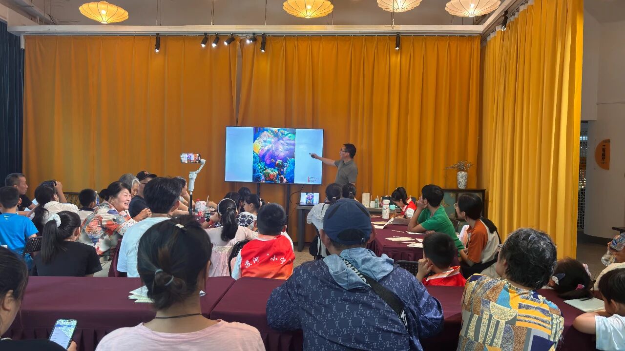 活动在轻松愉悦的氛围中拉开帷幕。活动特邀美育专家张磊老师首先为参与活动的亲子家庭带来一场专题艺术讲座。张老师通过生动的案例分析与互动问答,围绕艺术在儿童成长中的多重价值,深入浅出出地阐释了艺术如何帮助孩子更好地观察世界、表达情感、激发创造潜能。家长们在聆听与记录中收获启发,进一步搭建起理解艺术教育的桥梁,拓展了亲子艺术探索的新路径。