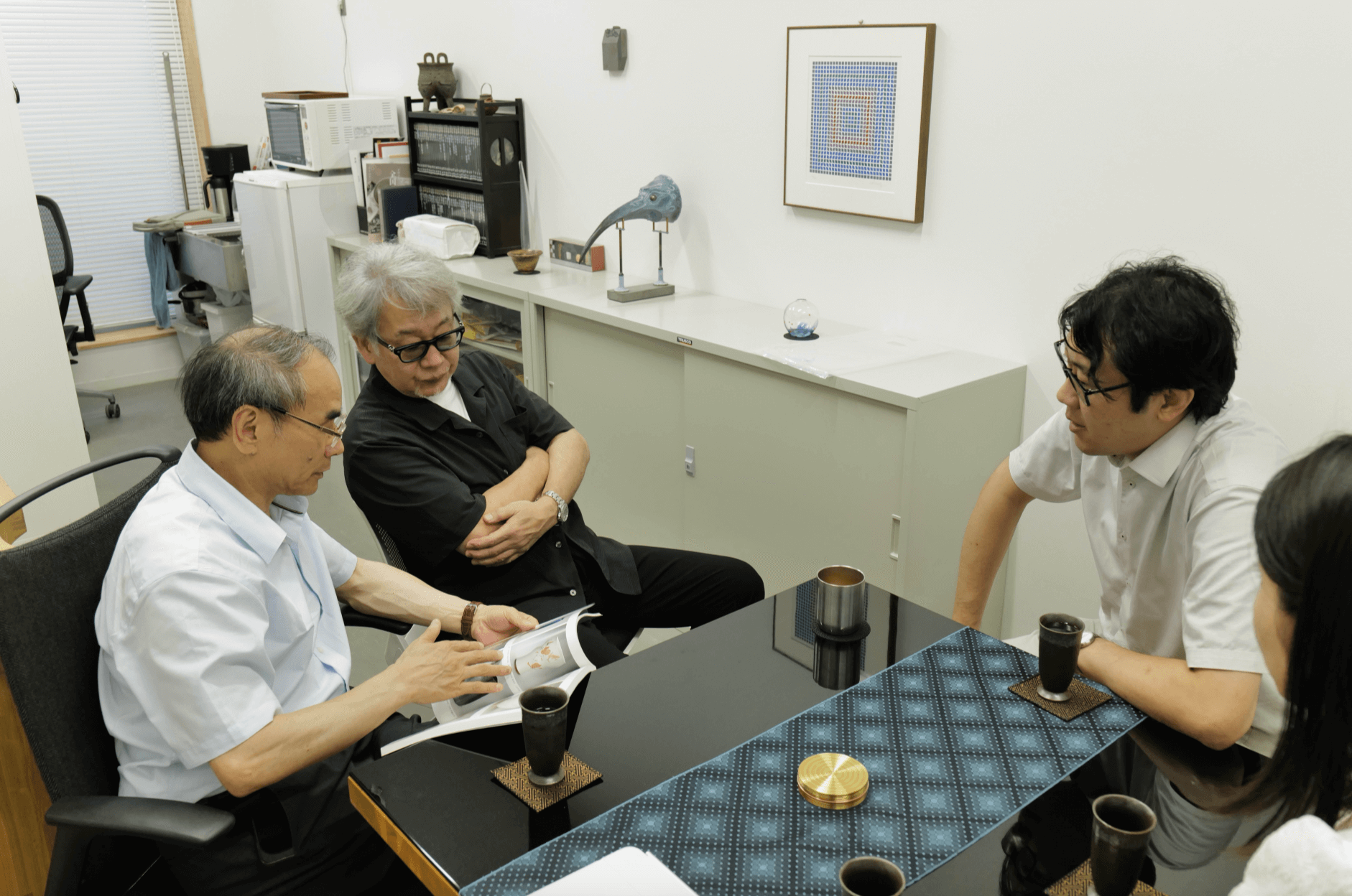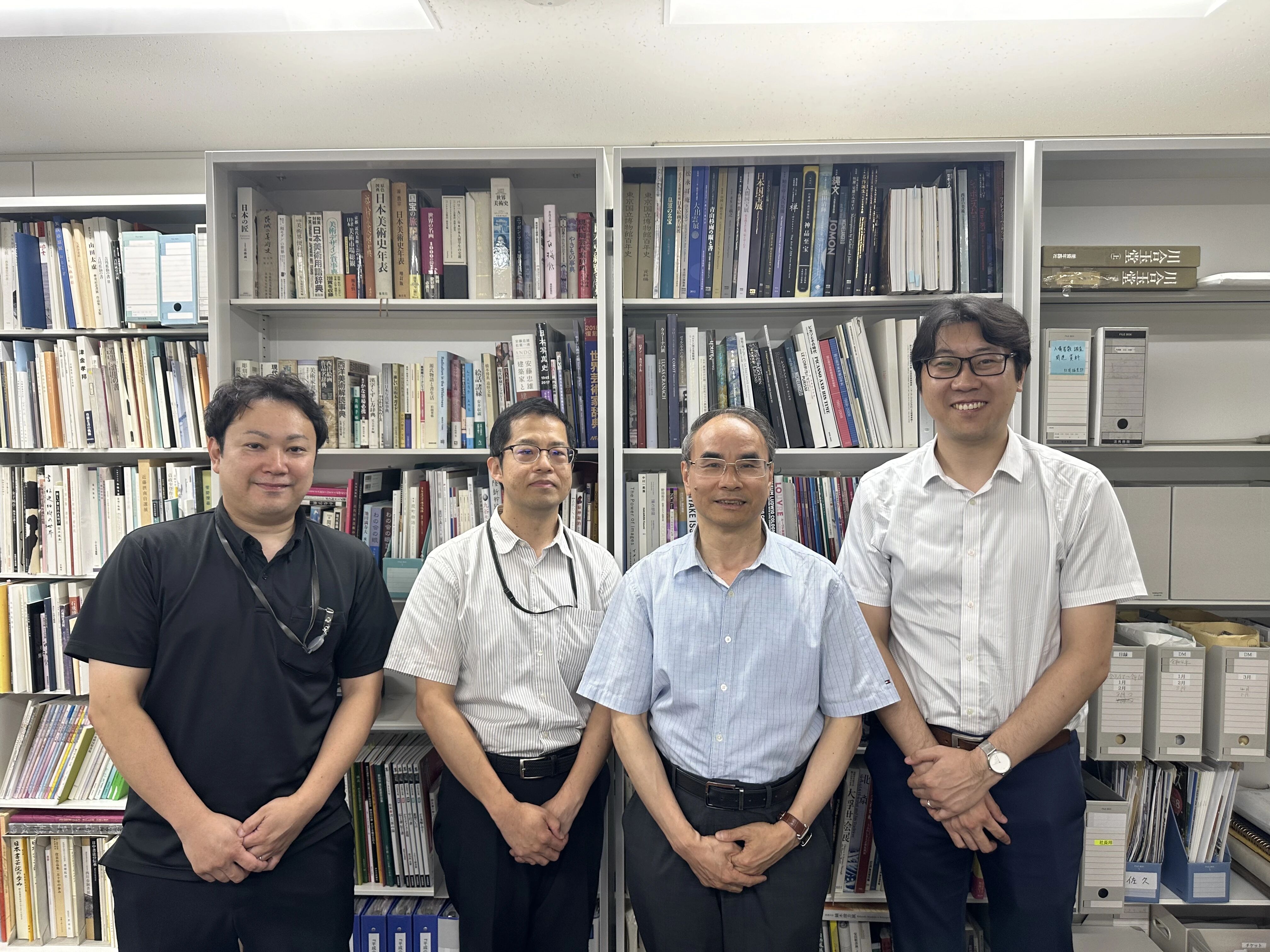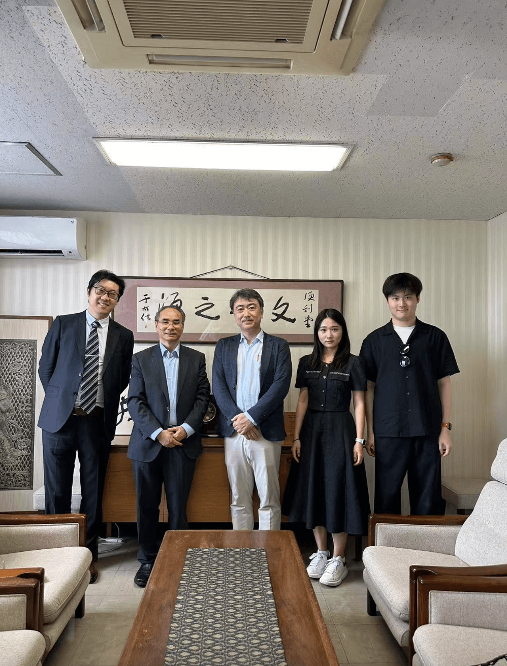 8月5日上午,冒着炎炎赤日,代表团一行拜访了出光美术馆常务理事、日本当代美术史权威学者河野元昭教授。河野教授曾长期担任世界上历史最悠久的美术专业期刊之一《国华》(创刊于1889年)的主编,并曾任秋田县立近代美术馆名誉馆长、京都美术工艺大学校长、静嘉堂文库美术馆馆长。凭着卓越的学术成就,他当选为日本学士院(科学院)会员(院士),并于2024年获颁瑞宝重光章 (国家二等勋章)。河野教授曾两度受邀参加我馆举办的国际非物质文化保护论坛。交流期间,代表团与河野教授和出光美术馆常务理事、事务局长实相寺昌二先生就今后的合作进行了深入会谈。