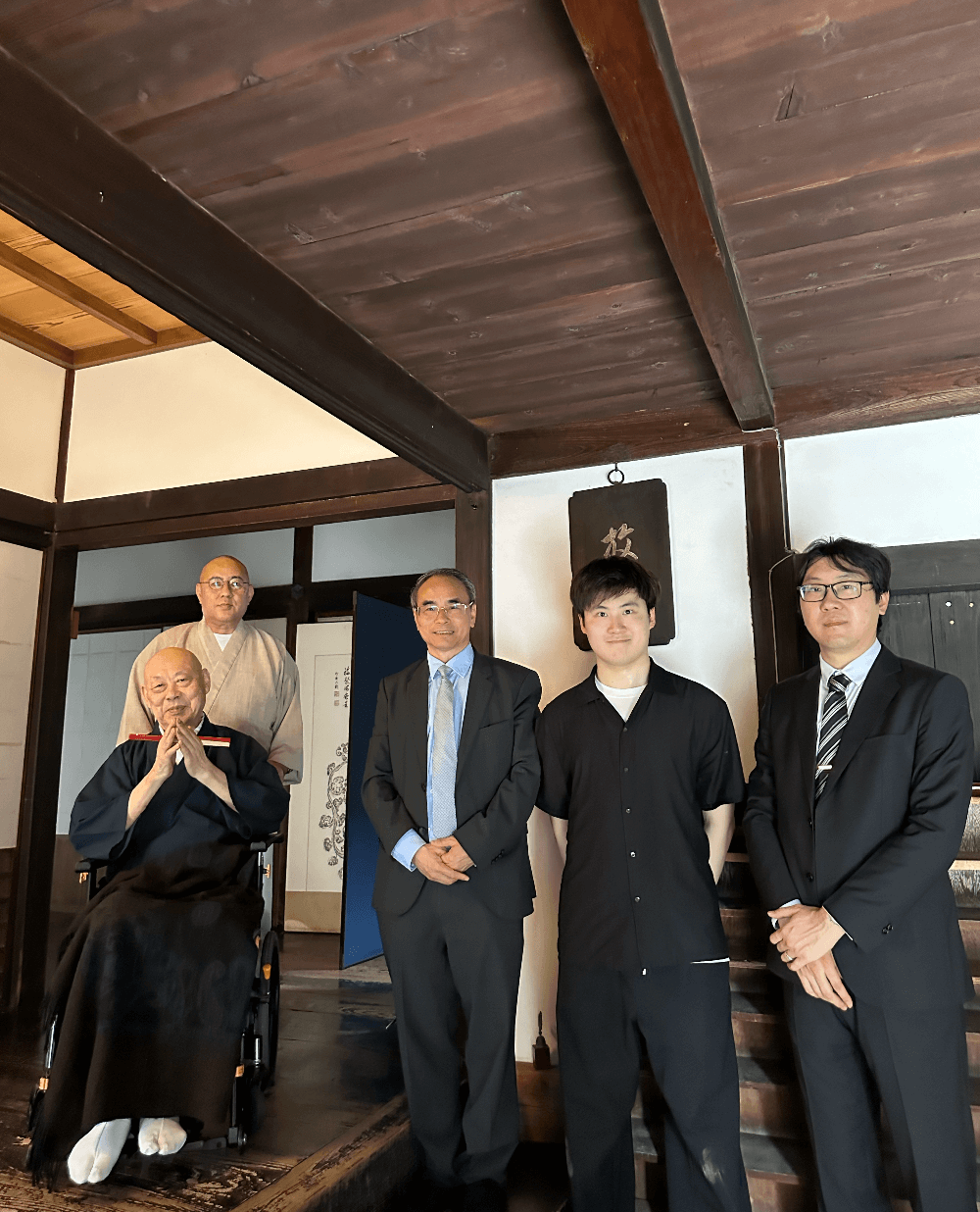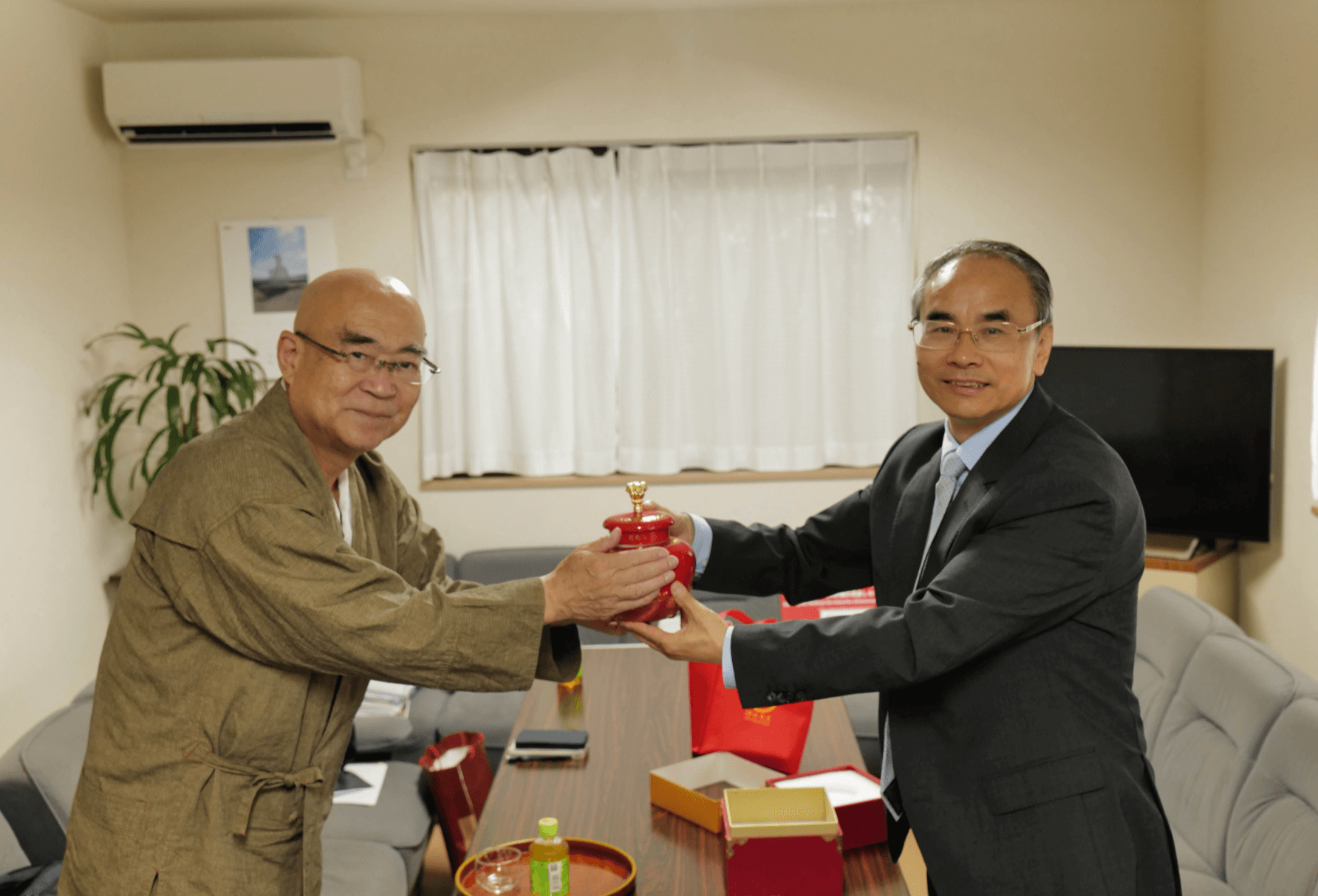 当日中午,代表团专程至京都相国寺拜访了日本临济宗相国寺派管长、京都佛教会理事长,金阁寺、银阁寺方丈有马赖底长老。92岁的有马赖底长老是一代高僧,在佛教界有广泛的社会影响。他曾多次参与我馆的文化交流活动,此次亦是他闭门谢客多年后首次接待外宾,让代表团深受感动。