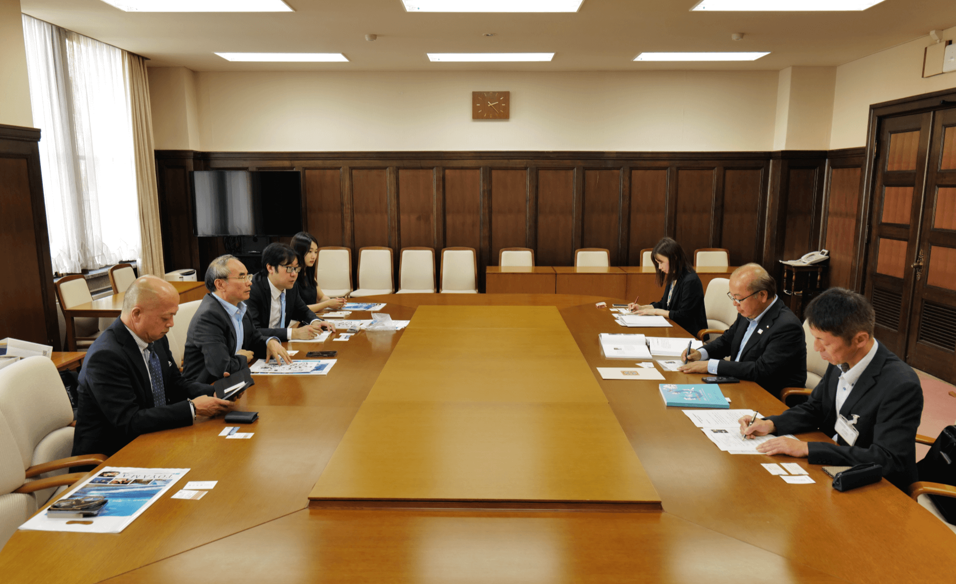 当日下午,代表团应邀至富山县厅拜访了该县(省)知事新田八郎。双方回顾了富山县以往艺术家参加我馆举办的国际传统艺术邀请展和国际(上海)非物质文化遗产保护论坛的情况,并就明年富山县组织艺术家参加相关活动进行了愉快的交流。