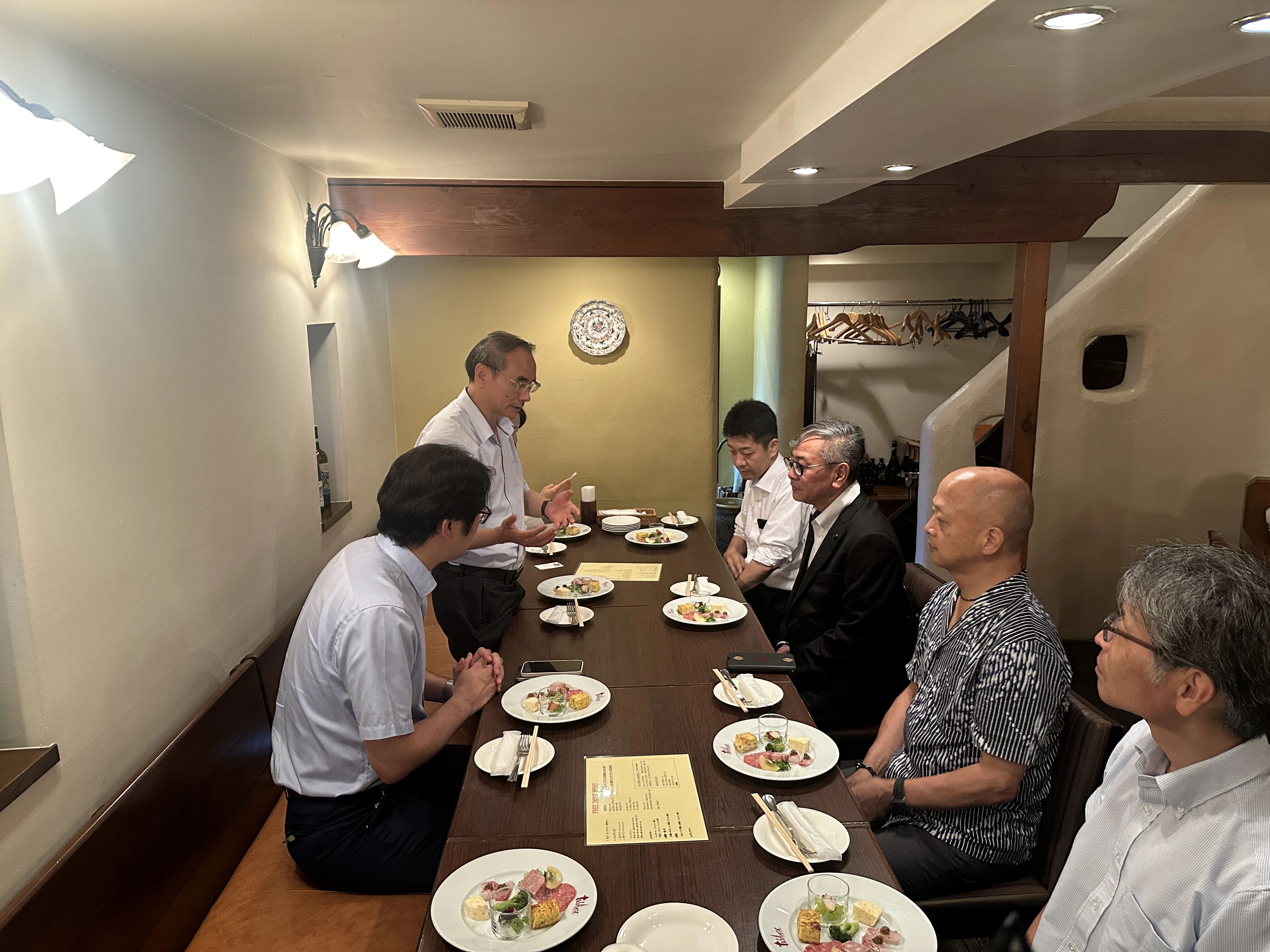 当晚,京都工艺美术作家协会理事长羽田登、副理事长今井真正等专门为代表团设宴洗尘。多年来京都工艺美术作家协会与我馆保持着紧密的合作关系,双方人员往来密切。餐叙期间,双方就后续合作进行了深入探讨。