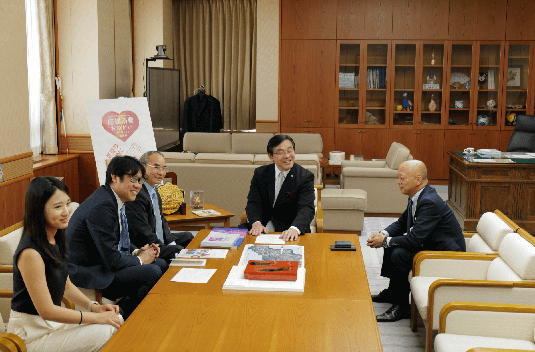 随后,代表团又拜访了金泽市市长村山卓先生。胡木清理事长首先感谢金泽市政府今年六月专门组织作品参加我馆举办的第十五届国际传统艺术邀请展、第十三届国际(上海)非物质文化遗产保护论坛,并派出代表团参加上述两项活动;村山卓市长祝贺活动取得了圆满成功并就下一步的文化交流提出了新的构想。