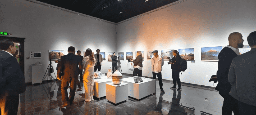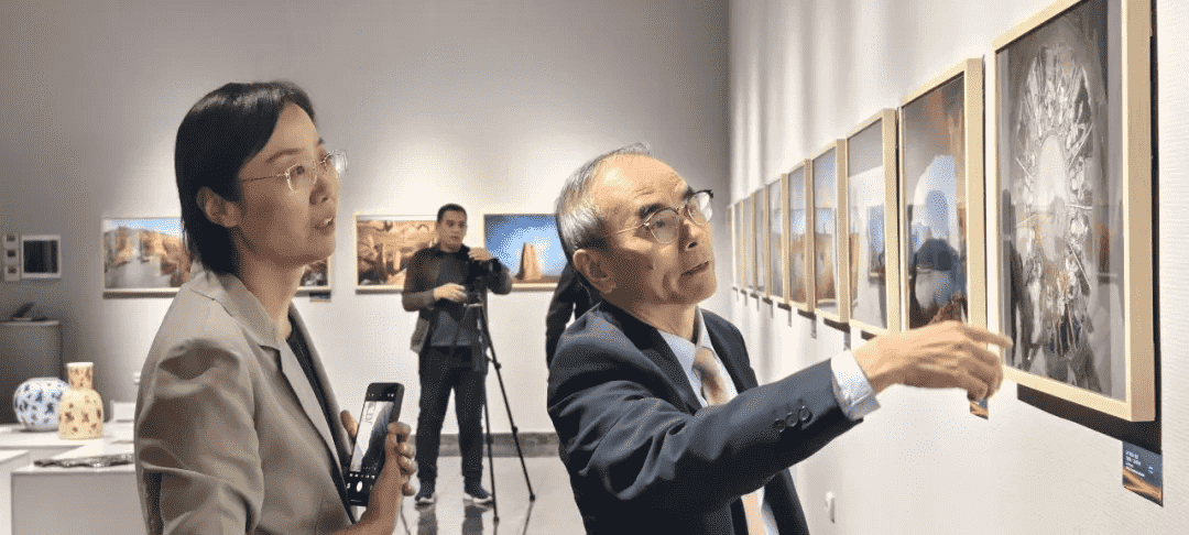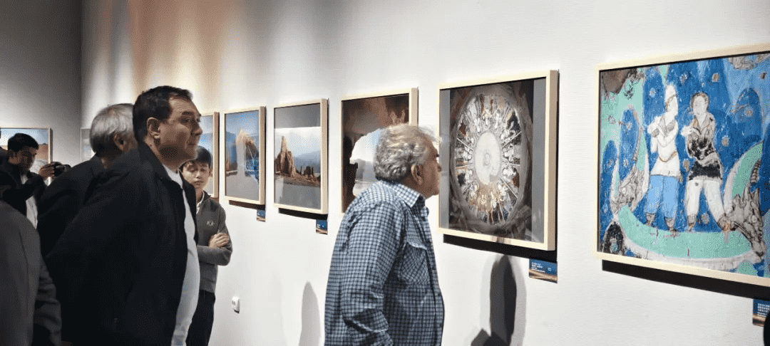 开幕式结束后,嘉宾们兴致盎然地走进展区,细赏佳作荟萃的艺术盛宴,感受中乌两国艺术家对丝绸之路文化底蕴与独特魅力的精彩诠释,并就艺术创作与文化交流进行了深入互动与探讨。