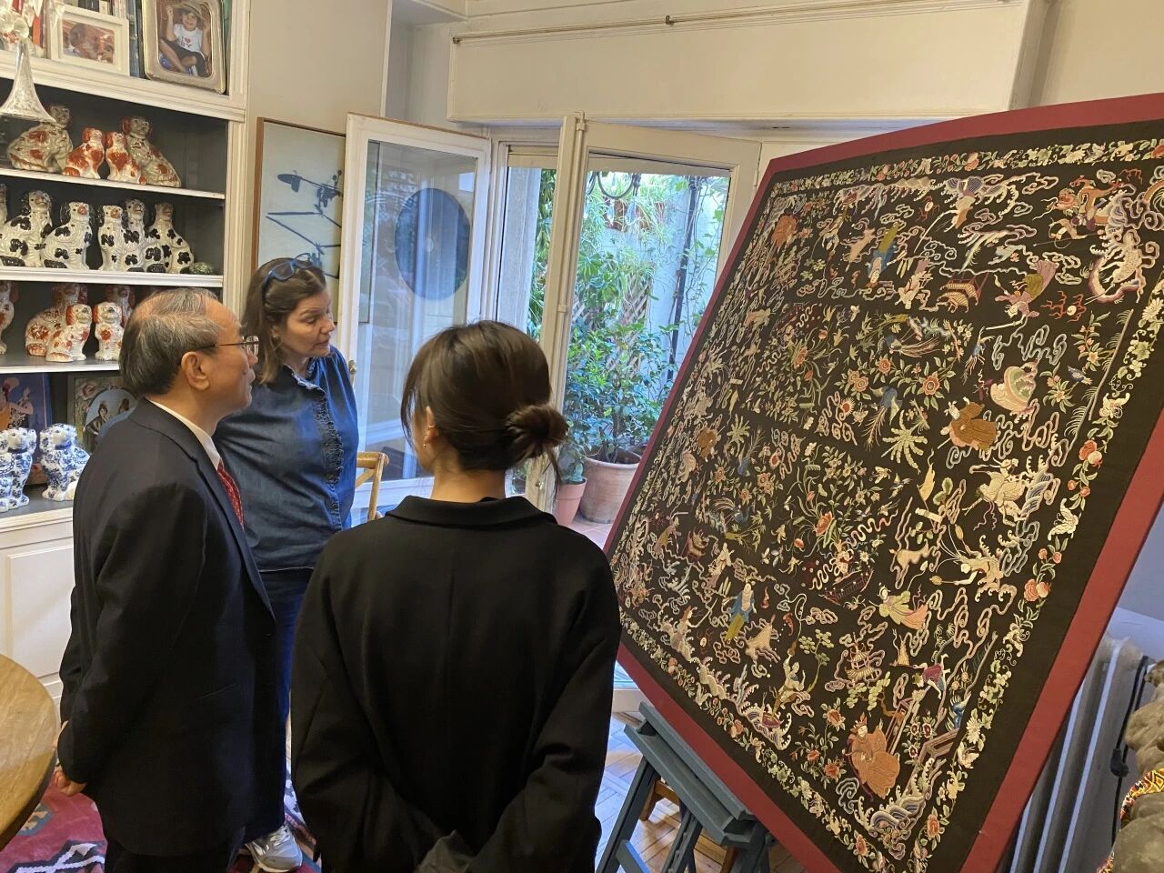 4月26日,应著名中国刺绣收藏家维罗妮卡·杜兰(Verónica Durán)女士的邀请,代表团专门赴其工作室,参观了其丰富的中国刺绣藏品。双方商定后续举办专题展览的具体事宜。