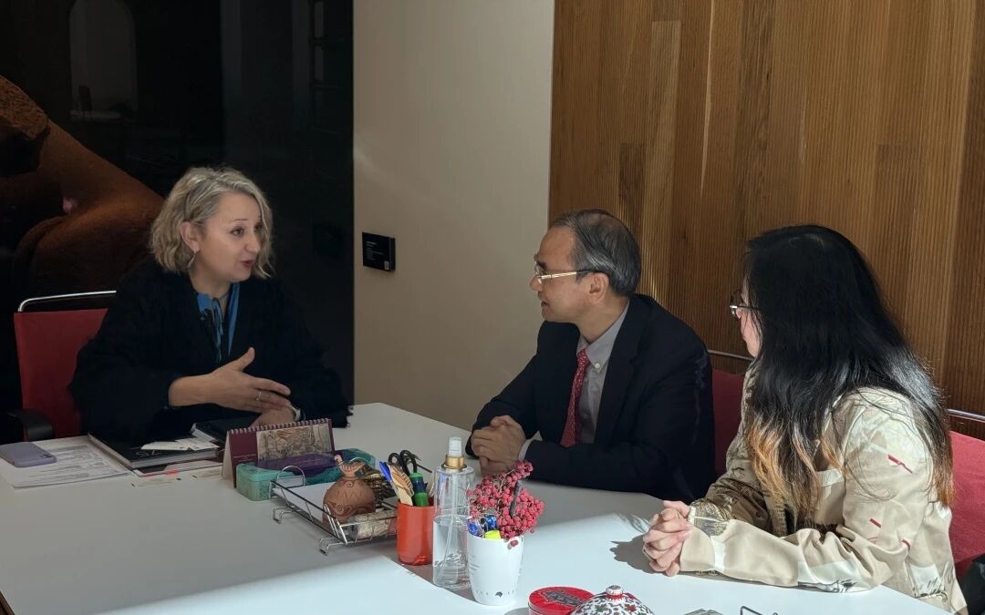 结束参观后,代表团专程前往马德里中国文化中心,拜会中国驻西班牙大使馆公使衔参赞贺踊、中国文化中心主任杨长青等领导。代表团的到来受到文化中心领导的热烈欢迎。