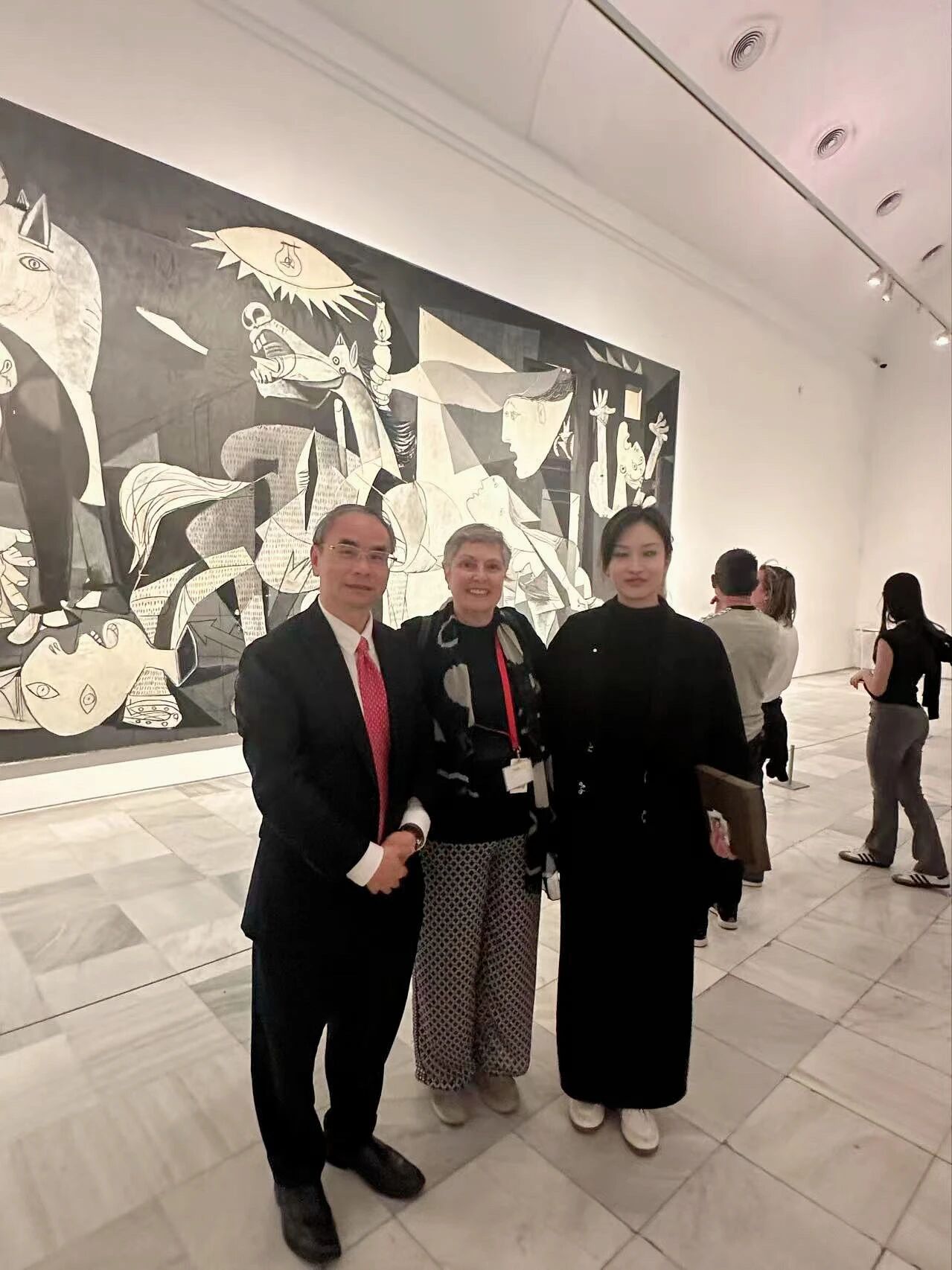 当天下午,代表团专程应邀访问了马德里索菲亚王后艺术博物馆。该馆由国际合作部部长夏洛特(Charlotte)女士亲自热情导览,为代表团介绍博物馆的建筑、设施、经典馆藏作品,并对西班牙本土艺术家毕加索、米罗、达利等的珍贵展品进行了深入的讲解。