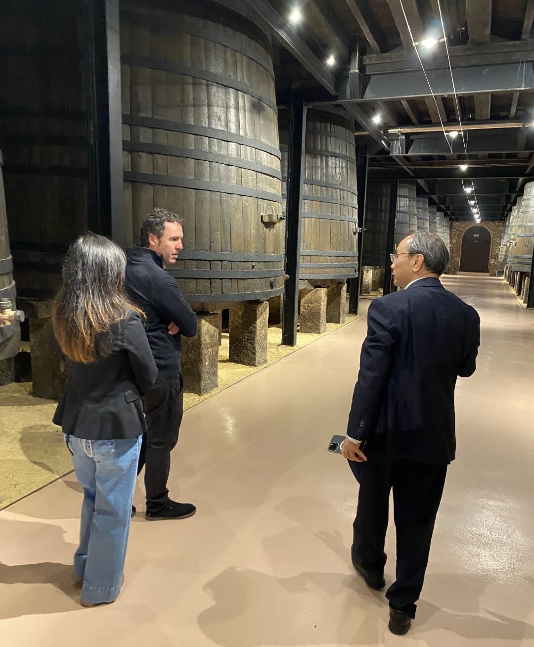 代表团深入参观了酒庄古老的酒窖和历史展厅,随后走访其现代化车间,观摩年产500万瓶以上葡萄酒的先进酿造工艺,探访深藏地底、鲜少对外开放的特级陈酿葡萄酒控温窖藏。