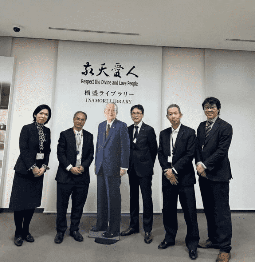 随后,代表团至由日本经营之神稻盛和夫创办的世界 500 强企业京瓷集团总部,拜访集团董事千田浩章,听取了京瓷的经营哲学及其在文化公益事业方面的发展情况介绍,并在千田董事和稻盛和夫资料馆馆长桥浦佳代等的陪同下参观了稻盛和夫资料纪念馆。