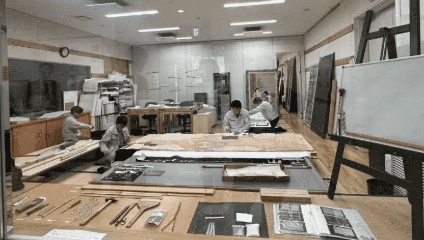 抵达金泽市内后,代表团立即赴石川县(省)文化财保存修复协会进行考察。据该协会理事长梶青华介绍,作为全日本第一家地方自治体开设的文物修复机构,该协会成立于 1997 年,专注于文化遗产的保存修复、调查研究及修复技术人员的培养,取得了累累硕果。