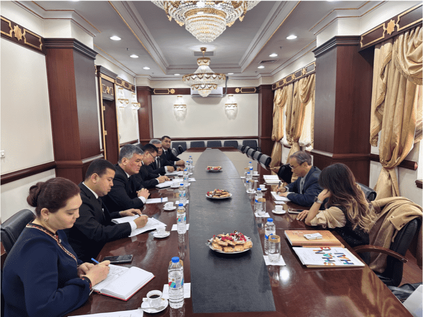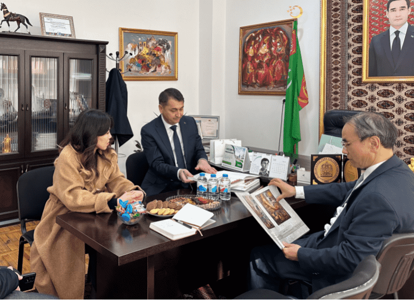 2月19日上午,代表团应邀访问了土库曼斯坦文化部。土库曼斯坦文化部副部长Shirimov Nursahet Nurmuhammedovich先生率国际关系司司长Maya Saparova、博物馆司司长Yagmyr Orayev、国家博物馆馆长Meretgldi Charyev、国家美术馆馆长Orazov Ismail、国家艺术联盟主席Yazmuradov Charymyrat等与代表团进行了友好会见。
