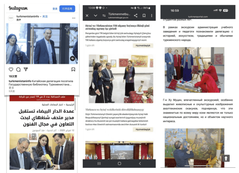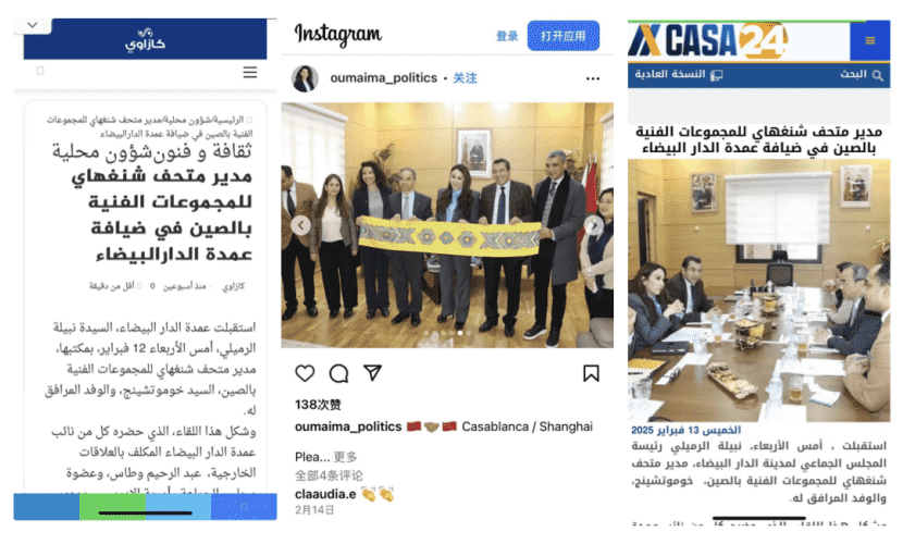 上海艺术品博物馆代表团本次摩洛哥、土库曼斯坦访问,引起了当地媒体的广泛关注。卡萨布兰卡市政府官网和土库曼斯坦国家电视台、世界频道、中国广播电台总台国际频道等进行了连续追踪报道。