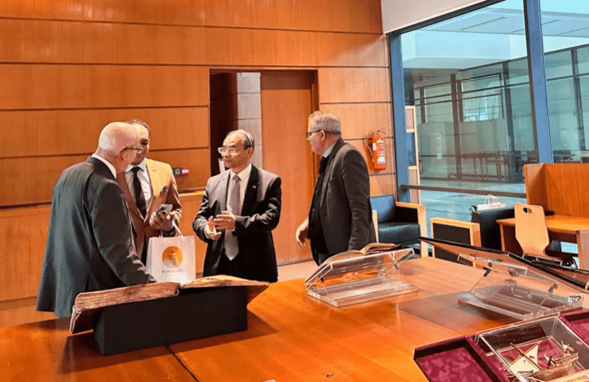 摩洛哥王国国家图书馆设施先进、功能齐全,是西亚北非地区的文化地标,馆藏图书量超过100万册,其中珍贵手稿14254件。在考察过程中宾主双方就未来的合作进行了深入探讨。