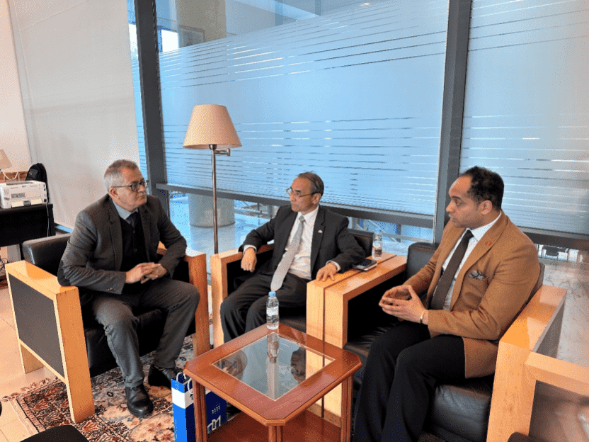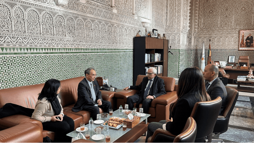 2月14日上午,代表团一行应邀至摩洛哥青年、文化和新闻部,并受到了该部秘书长(副部长)Mostafa Al Masody先生、艺术司司长Hisham Abkary、文化遗产司司长Mostafa Glok、国际合作司司长Rachid的热烈欢迎。