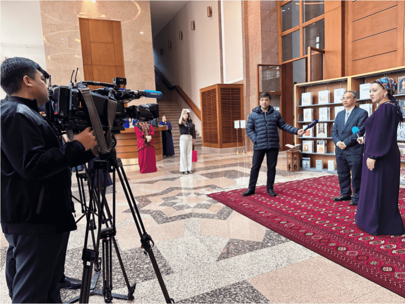 共有七层建筑的土库曼斯坦国家图书馆共有藏书660万册,下辖76家地方公共图书馆,馆内有250多名员工。由于该国之前复杂的历史经历,古籍珍本大多散轶,现存古籍大多是16世纪之后的版本,而且馆内中文书籍馆藏稀少。馆长Lachyn Nurmuhammedova女士期待我馆今后为其中文馆藏提供助力,双方还就其它合作事宜进行了商谈。