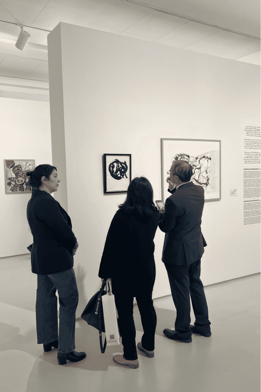 据介绍,该院除了研究、典藏功能,还招收本硕连读的艺术类学生。在六七个展厅和走廊过道里,挂满了琳琅满目的作品,由于楼层挑高约有数米,故展出了许多巨幅作品,给人予强烈的视觉冲击感。除了品鉴了大量作品,还参观了地毯艺术班、陶瓷艺术班学员的现场表演,该院学生高质量的作品给代表团留下了深刻印象。