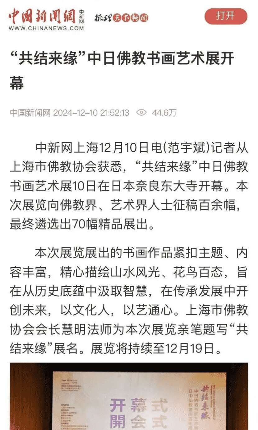 目前,为期十天的“共结来缘——中日佛教书画艺术展”已于日本当地圆满收官。