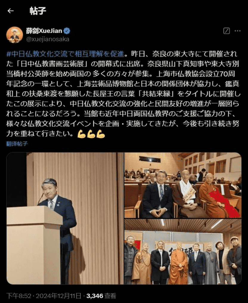 “山川异域,风月同天,寄诸佛子,共结来缘。”本次展览的成功举办为中日两国的文化交流谱写了新篇章,也进一步推动了两国民间的友好关系,特别是上海佛教界、文化界与日本奈良、京都同行的深度交流。期待相关单位以此次展览为契机,继续深化合作,为中日友好交流不断注入新活力。