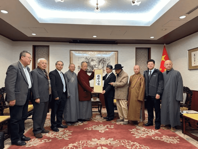为了指导本次中日佛教艺术交流展,中国驻大阪总领事薛剑专程在开幕式前会见了上海市佛教、艺术界的相关代表。