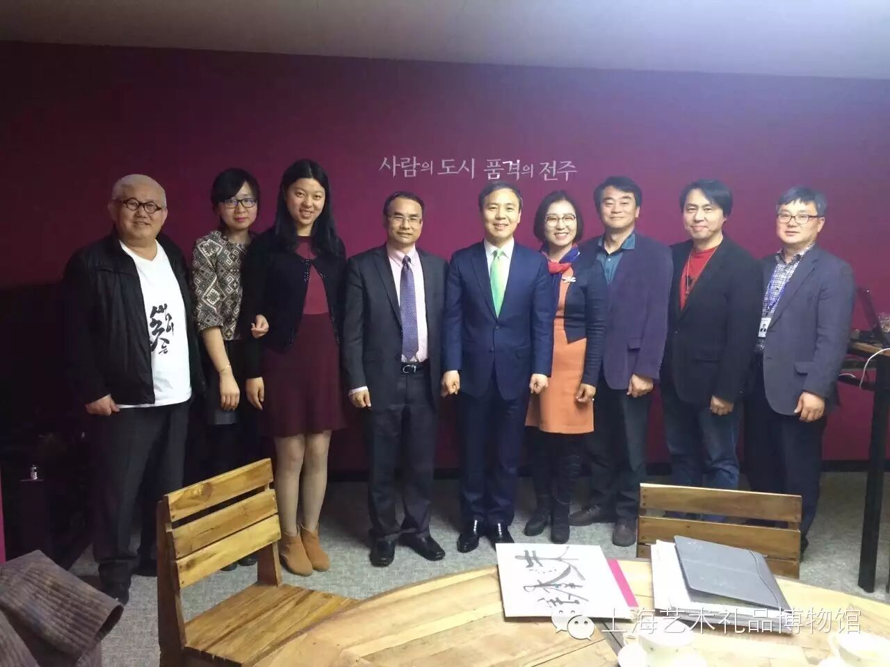 随后,胡主任一行又不顾旅途劳顿,立即赶至韩纸人形艺术馆馆长朴锦淑的工作室,就第六届中、日、韩艺术邀请展的组织工作与韩国相关方面进行深入交流。