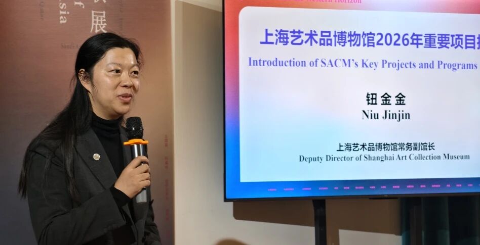 上海艺术品博物馆常务副馆长钮金金向嘉宾推介2026年博物馆重点对外合作交流项目