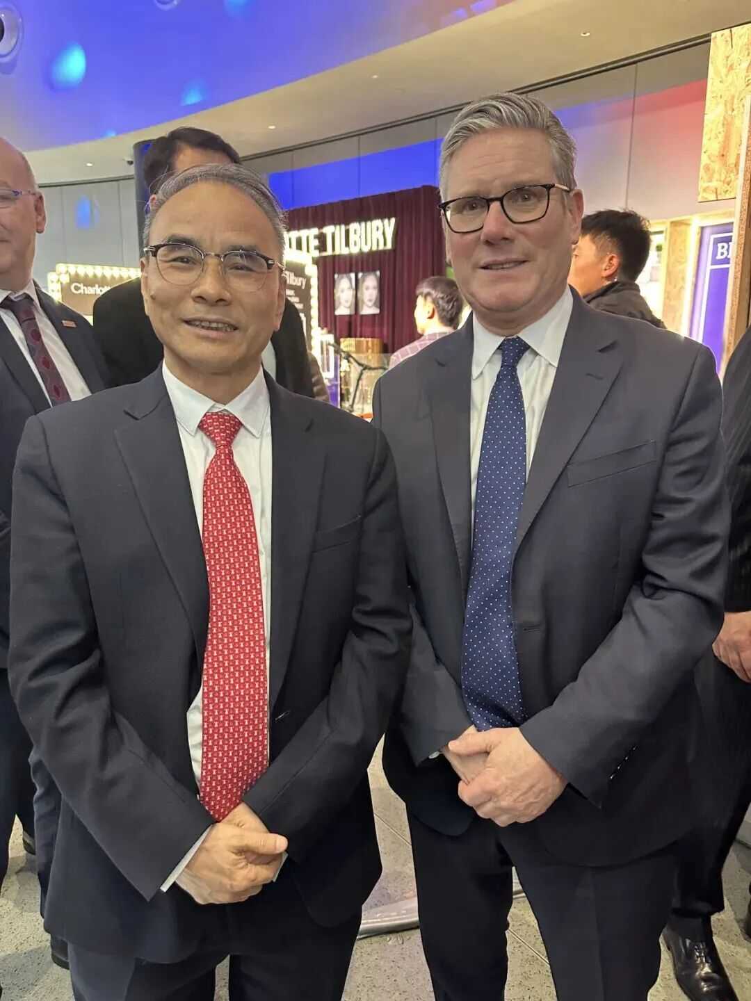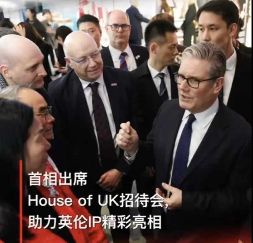 招待会上,胡木清理事长向斯塔默首相介绍了博物馆近年来与英国文博界的合作成果,和正在推进中的一系列中英文化交流项目。斯塔默首相对此表示高度赞赏,并特别肯定了“炼‘莎'成金——纪念莎士比亚诞辰460周年特展”在促进中英两国民心相通方面的独特意义,双方友好交流后合影留念。