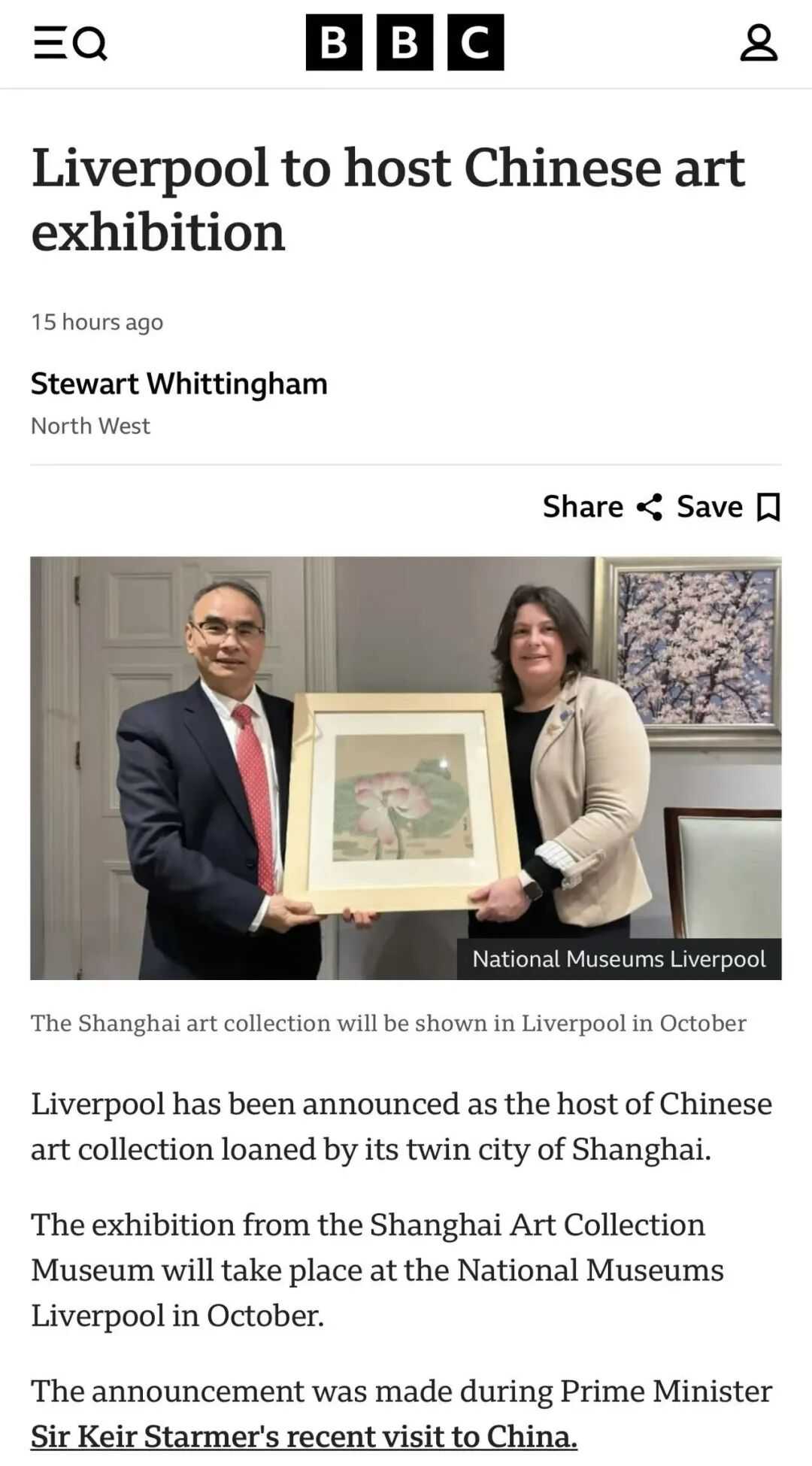 BBC(英国广播公司)报道我馆与利物浦国家博物馆签署展览合作协议(部分截图)