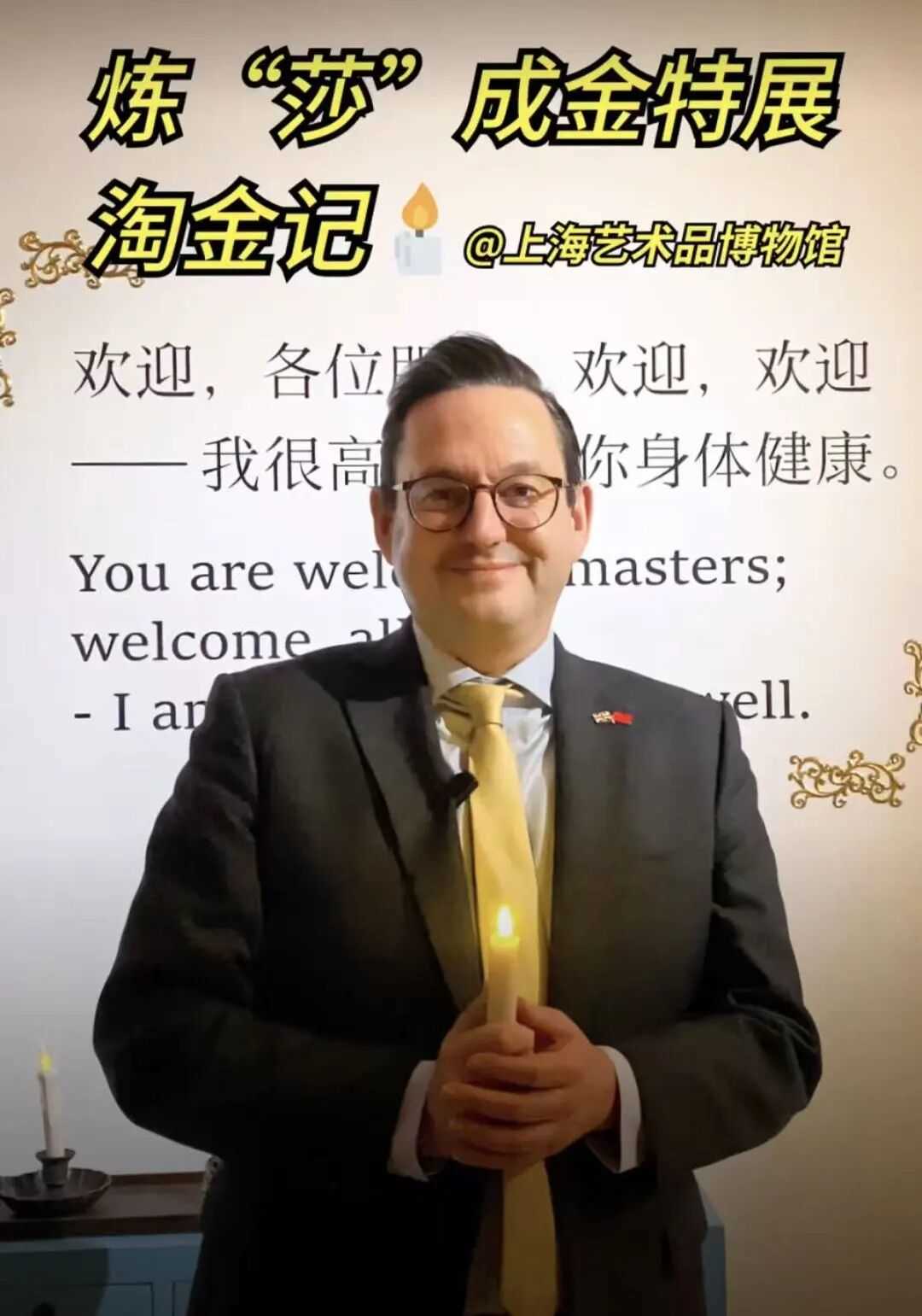 英国驻上海总领事包迈岫(Matt Burney) 为我馆举办的“炼莎成金——纪念莎士比亚诞辰460周年特展”亲自推介导览
