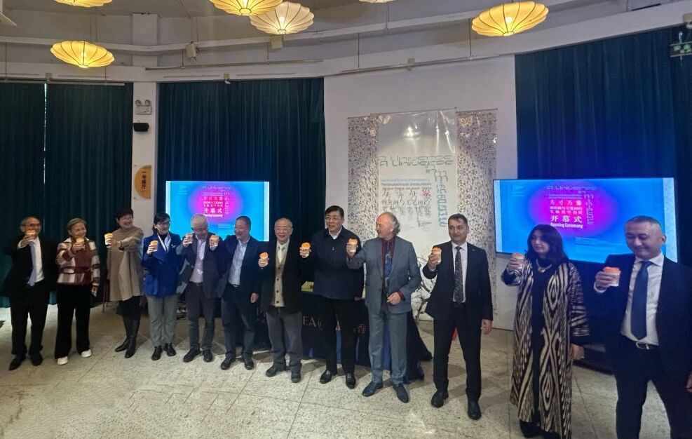 中外贵宾共同举杯(茶)庆祝展览顺利开幕