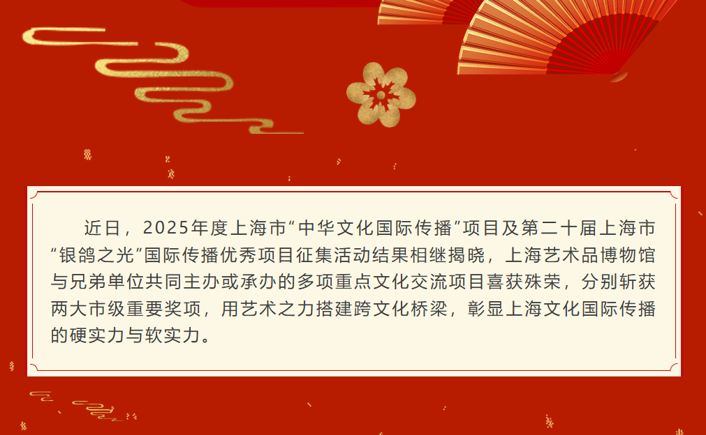 喜讯!2025年度上海市“中华文化国际传播”和“银鸽之光”评选揭晓,上海艺术品博物馆榜上有名