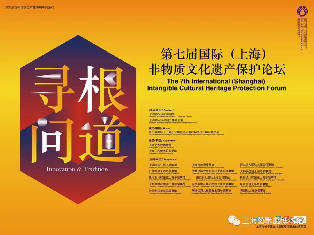 由上海市文化和旅游局、上海市人民政府外事办公室、上海市长宁区人民政府指导,上海市创意产业协会主办,上海艺术品博物馆和上海工艺美术职业学院共同承办的第七届国际(上海)非遗保护论坛,是第九届国际传统艺术邀请展的系列活动。