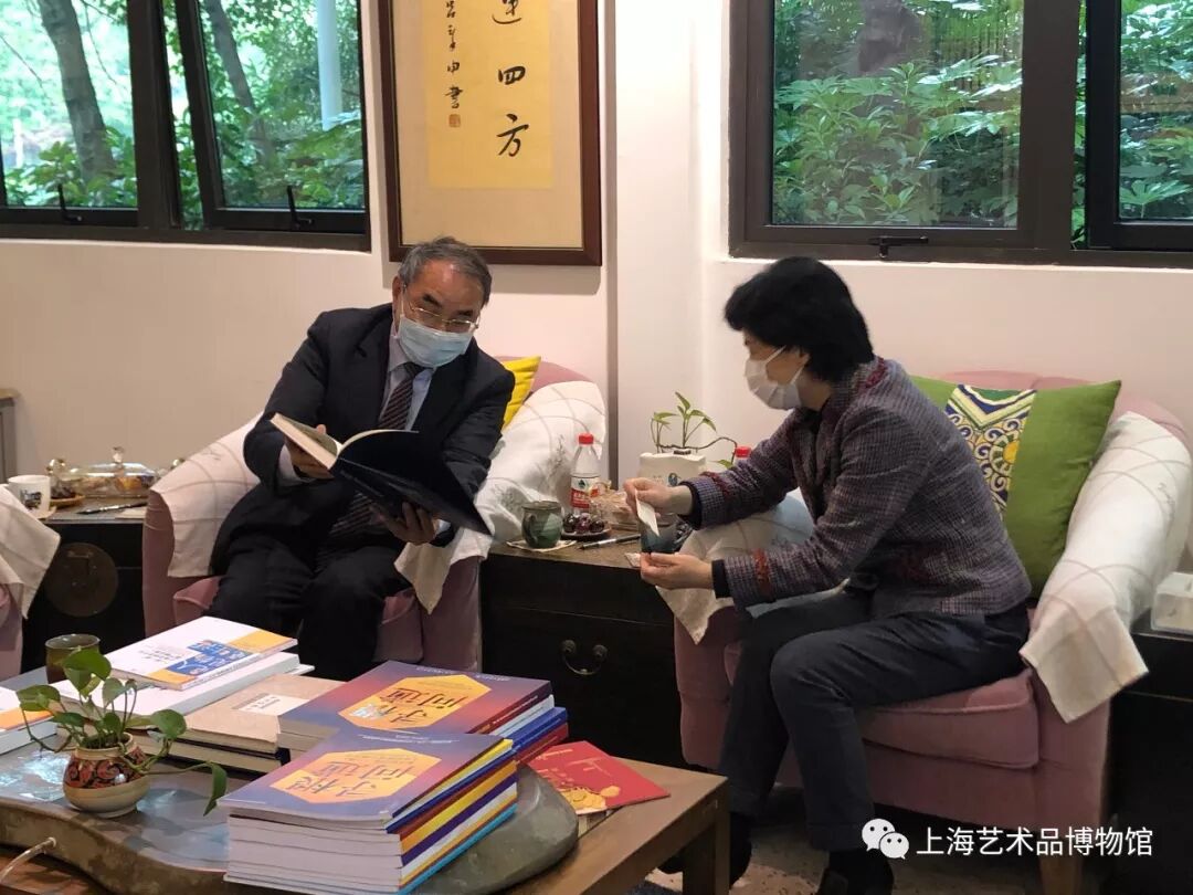 随后,本馆理事长胡木清向王岚区长一行详细汇报了博物馆的日常运营情况、馆藏特色、活动开展、队伍建设、文创开发、学术成果、公益服务等工作,特别是近几年来在围绕上海市委、市政府打响“上海文化”品牌和助推长宁区打造“国际精品城区”方面所开展的系列国际文化交流活动情况。