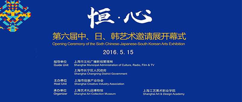 由上海市文化广播影视管理局、上海市长宁区人民政府指导,上海市创意产业协会主办,上海艺术品博物馆和上海工艺美术职业学院承办的第六届中、日、韩艺术邀请展,系庆祝第四十个国际博物馆日和第十一个中国文化遗产日的大型纪念活动。本届展览以“恒·心”为主题,以积极响应中央领导倡导的大国工匠精神,同时激励艺术家恒久坚持、用心专注地创作艺术精品。日本前首相村山富市先生专门为本届展览亲笔题写了主题词。