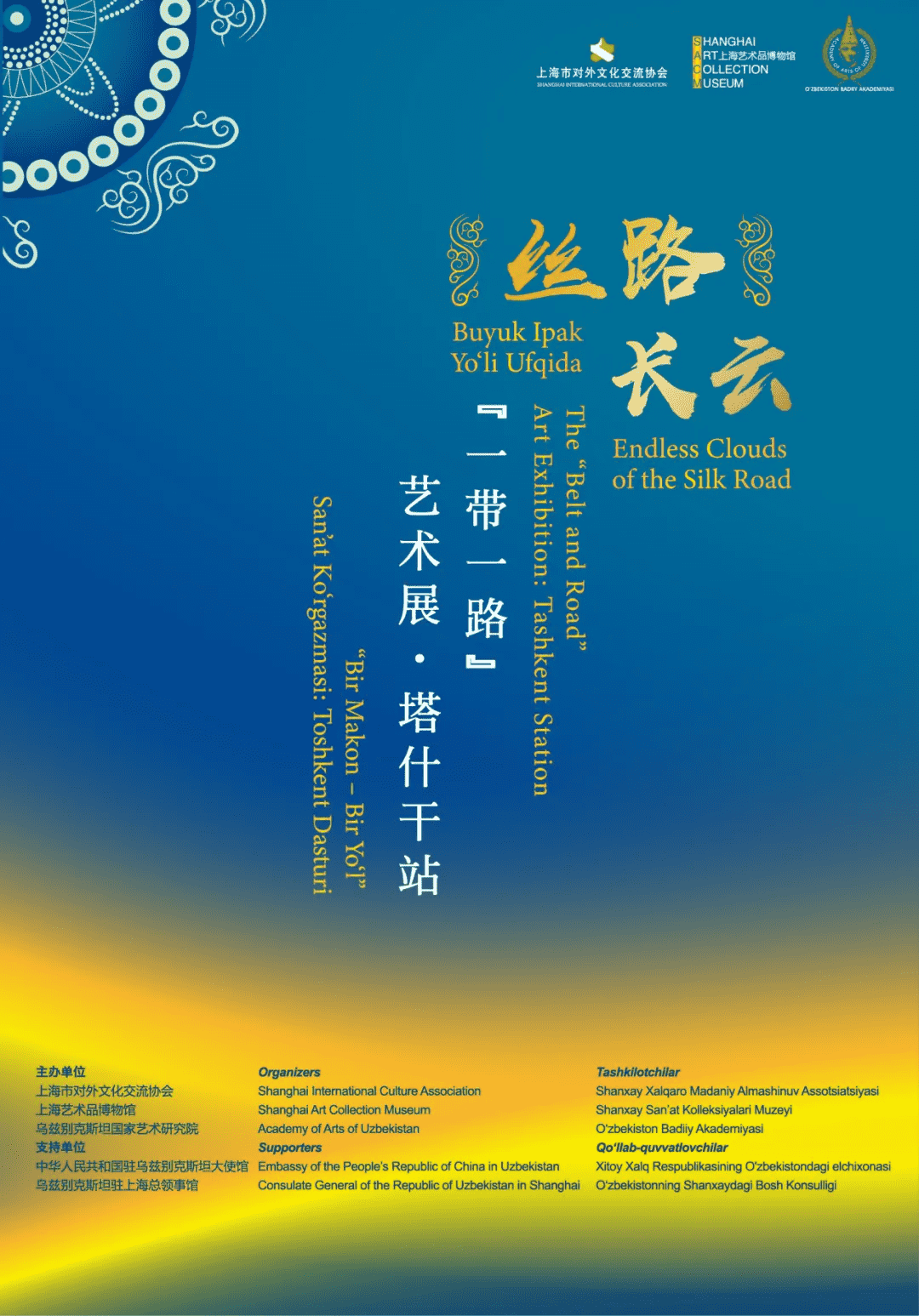 主办单位: 上海市对外文化交流协会、上海艺术品博物馆与乌兹别克斯坦国家艺术研究院