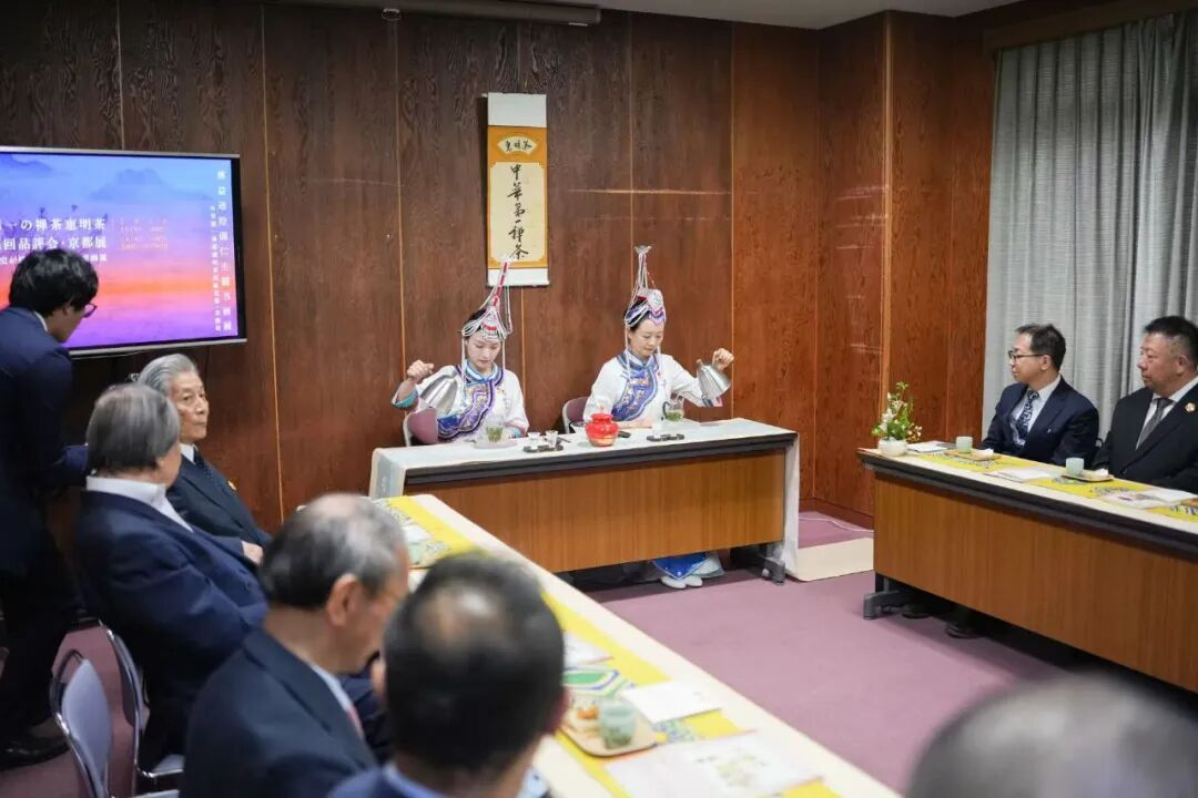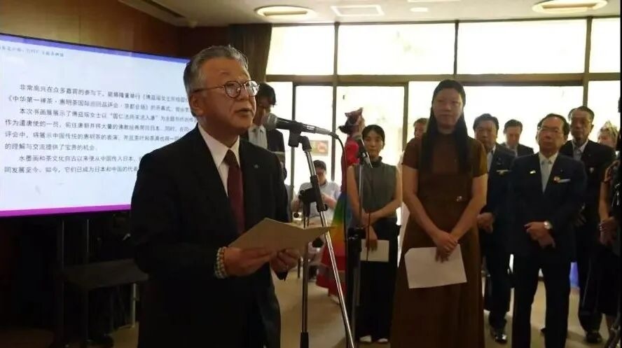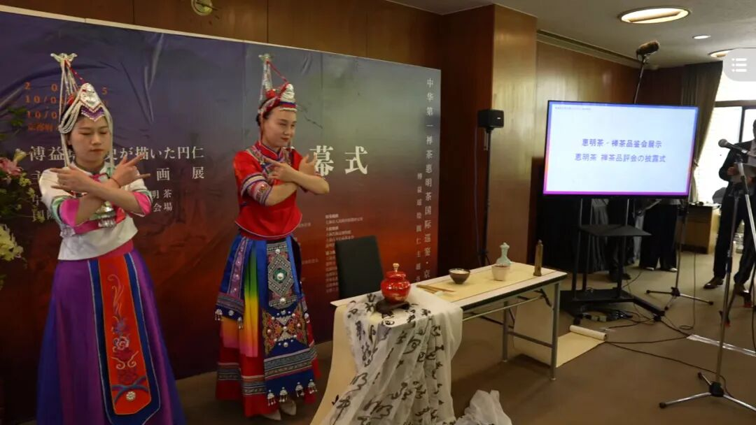 惠明茶源于唐代,是中国禅茶文化的典型代表。明清时期曾两度入选为朝廷贡品,并在巴拿马万国博览会与上海世博会上荣获金奖。2022年,“中国传统制茶技艺及相关习俗”被列入联合国教科文组织《非物质文化遗产名录》,此次惠明茶作为中国茶文化的代表,让日本各界体验了中国茶文化的独特魅力。在袅袅茶香之间,观者得以体味“茶禅一味”的悠远境界;水墨与茶艺交织相映,共同营造出清雅而深厚的文化氛围。