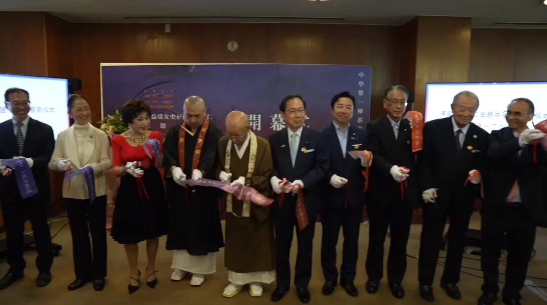 当天的开幕式隆重热烈,贵宾云集。日本公明党众议院议员、原文部科学省副大臣浮岛智子,公明党众议员竹内让、中川宏昌,日本国文化厅审议官松坂浩史,京都府副知事古川博规、著名水墨画家傅益瑶,比叡山延历寺代表、管理部部长青木円学,京都佛教会常务理事、圣护院门迹(皇家寺院)门主(方丈)宫城泰年,创价学会副会长清水重臣、京都工艺美术作家协会理事长羽田登、京都陶瓷器协会理事长今井真正,京都府立文化艺术会馆馆长山本范子、上海艺术品博物馆理事长胡木清、惠明茶禅文化研究院理事长刘园英等众多中日两国的领导、专家学者、社会名流、佛教界长老、禅茶爱好者、媒体记者等一百多人出席了开幕式。