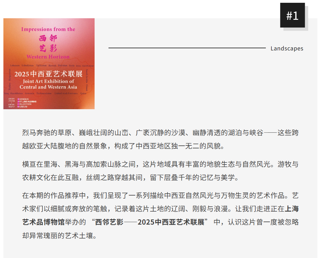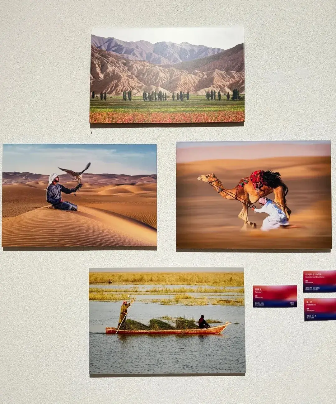 展览中还呈现了来自中西亚多国的风光摄影:在辽阔壮丽的群山之间,吉尔吉斯斯坦的牧者策马跃过奔腾的山涧;伊拉克的湖泊之上,渔舟与粼粼倒影交织出静谧而古老的生活节奏;阿联酋与阿曼的金色沙丘之间,展翅的雄鹰与疾驰的骆驼在风中形成力量与速度的回响;而亚美尼亚阿勒山的雪岭与云影,则以沉静从容的姿态,见证着文明绵延的余韵与时间的回声……