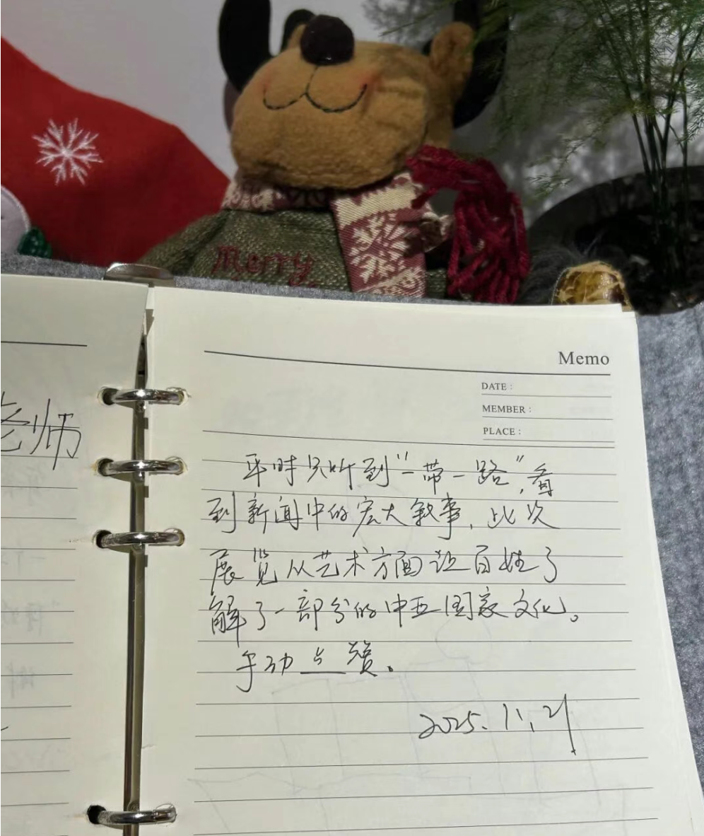 “平时只听到‘一带一路’,看到新闻中的宏大叙事,此次展览从艺术方面让百姓了解了一部分的中五国家文化,手动点赞。”