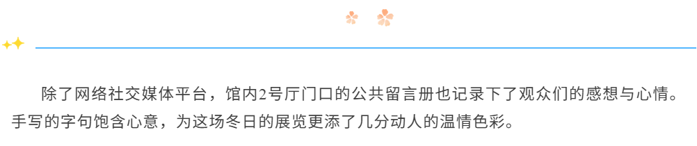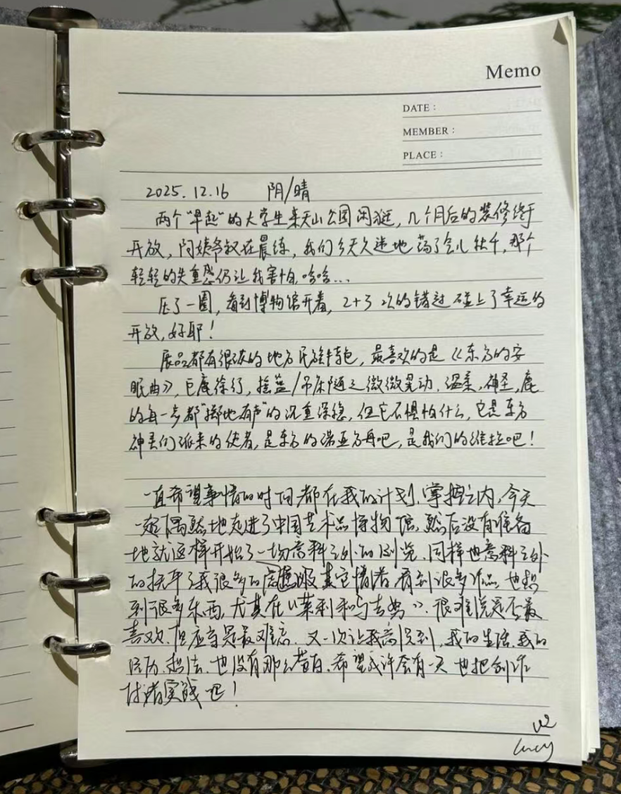 “一直希望事情的时间都在我的计划、掌控之内,今天偶然走进了艺术品博物馆、然后没有准备地就这样开始了一场意料之外的浏览,同样意料之外得抚平了我很多焦虑和其他情绪。看到很多作品,也想到很多东西,尤其在《莱利与马吉努》,很难说是不是喜欢,应当是最难忘。又一次让我意识到,我的生活,我的经历,想法,也没有那么苍白。希望或许会有一天也把创作付诸实践吧!”