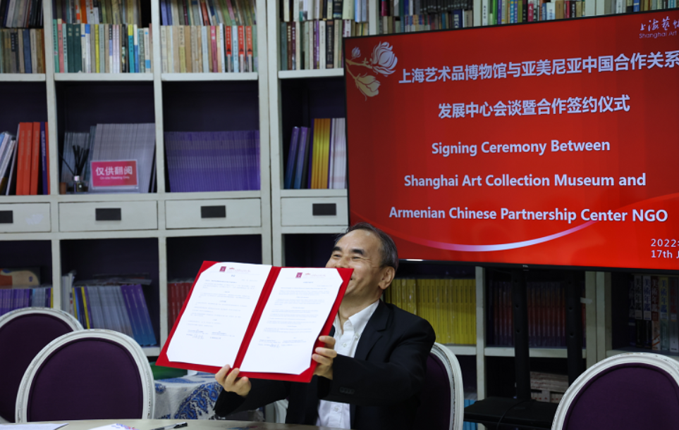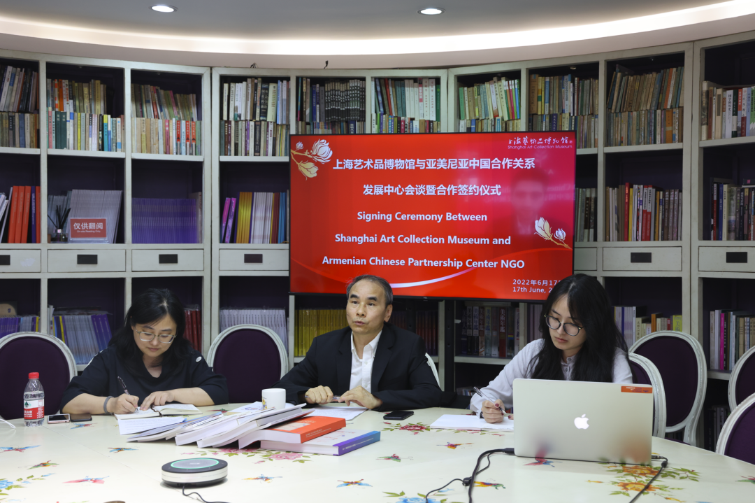 6月18日,上海艺术品博物馆与亚美尼亚中国合作关系发展中心(ACPC)举行了线上会谈暨合作签约仪式。上海艺术品博物馆理事长胡木清与亚美尼亚中国合作关系发展中心主席阿尔曼·姆希塔良(Armen Mkhitaryan)分别代表双方在合作意向书上签字。
