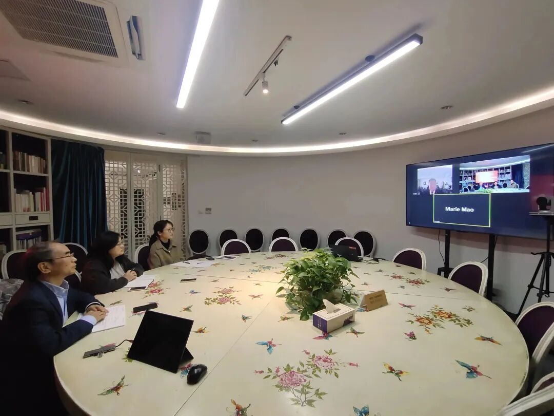 1月12日,上海艺术品博物馆理事长胡木清向本馆艺术顾问、日本国文化勋章获得者大樋陶冶斋(大樋年朗)先生和今井政之先生致以新春问候,并分别与其长男大樋年雄和今井真正举行线上视频会议。