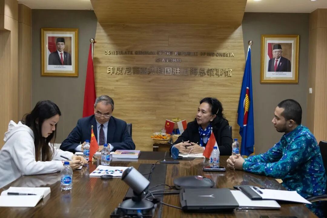 同日中午,我馆赴印尼驻上海总领事馆与文化领事蒙娜、巴厘岛太平洋岛民博物馆馆长奥吉尔等进行三方视频会议,商讨我馆与巴厘岛的文化交流。