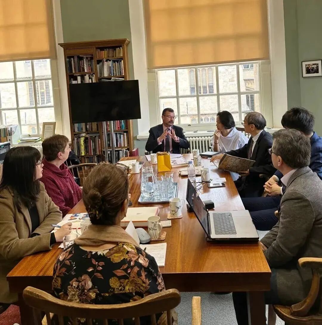 4月28日,代表团一行与博德利安图书馆相关负责人进行了工作会议,主管学术和典藏的副馆长安东尼(Mr. Antony Brewerton)、东亚馆藏部主任马蒂明(Prof. Mamtimyn Sunuodula)、亚非馆藏部主任吉丽莲(Dr. Gillian Evison) 、遗产保护与科技部主任维吉妮亚(Ms. Virginia Llado-Buisan)共同出席了会议,双方就今后的进一步合作达成了诸多共识。