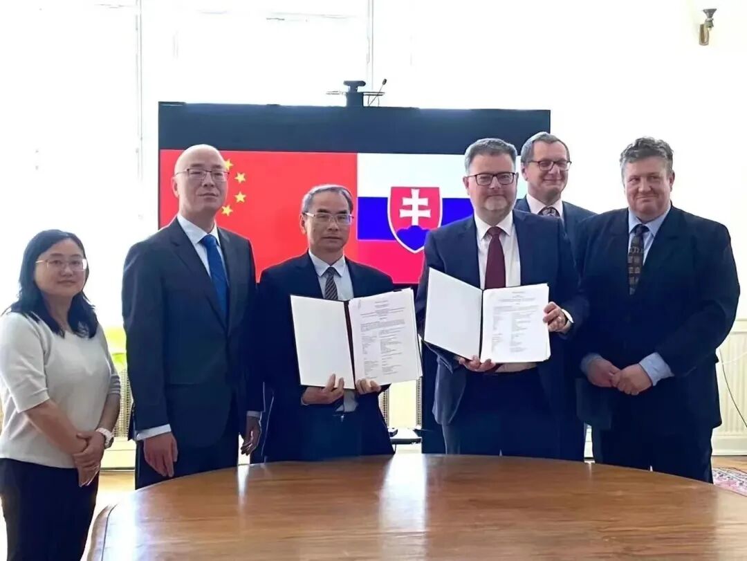 4月27日上午,上海艺术品博物馆与斯洛伐克国家博物馆总馆关于举办“中国传统艺术国际巡展·布拉迪斯拉法站”的签约仪式,在多瑙河边的斯洛伐克国家博物馆总馆所属国家自然历史博物馆举行。斯洛伐克国家博物馆总馆馆长帕尼斯(Mr. Panis Branislav)与上海艺术品博物馆理事长胡木清代表双方正式签署了合作协议。中国驻斯洛伐克大使馆公使衔参赞王霁和斯洛伐克文化部文化遗产司司长拉多斯拉夫(Mr. Radoslav Ragac)分别代表两国政府部门,共同见证了签约仪式,双方还表示将全力支持展览的顺利举行。