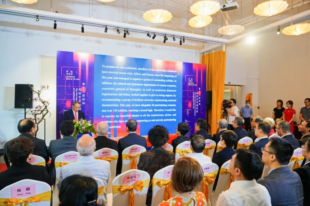 众多中方领导和联合国教科文组织中国代表处首席代表夏泽翰、日本驻上海总领事赤松秀一、伊朗驻上海总领事拉马赞·帕尔瓦兹、韩国驻上海总领事金英俊、丹麦驻上海总领事魏鸣珂、委内瑞拉驻上海总领事莱斯贝斯·莱昂、斯洛伐克布拉迪斯拉发州文化厅厅长斯威特兰纳、埃及国家博物馆馆长阿里·阿卜杜勒哈利姆、日本宫内厅正仓院事务所前所长西川明彦、印尼日惹艺术学院校长蒂姆布·拉哈乔、亚美尼亚中国合作关系发展中心主席阿尔曼、韩国Savina美术馆馆长李明玉等外方嘉宾及艺术家代表、媒体记者等共同出席了展览开幕式。